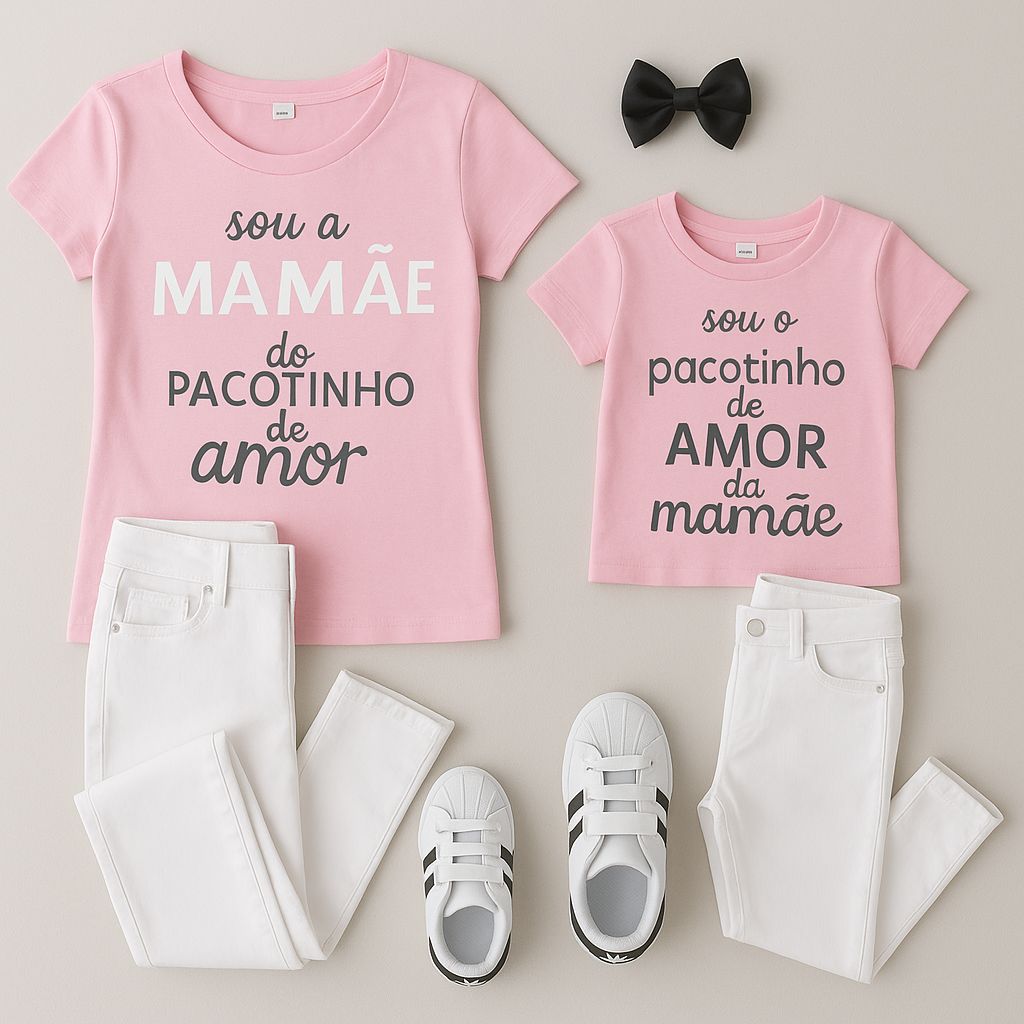 O preço se refere ao kit, um modelo Mãe e um filha. Tecido: Algodão Cor: Rosa Modelo: T-shirts