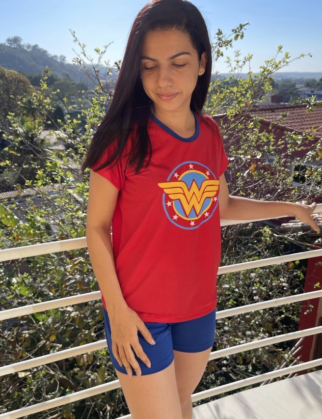 Pijama Adulto Feminino com manga Mulher Maravilha